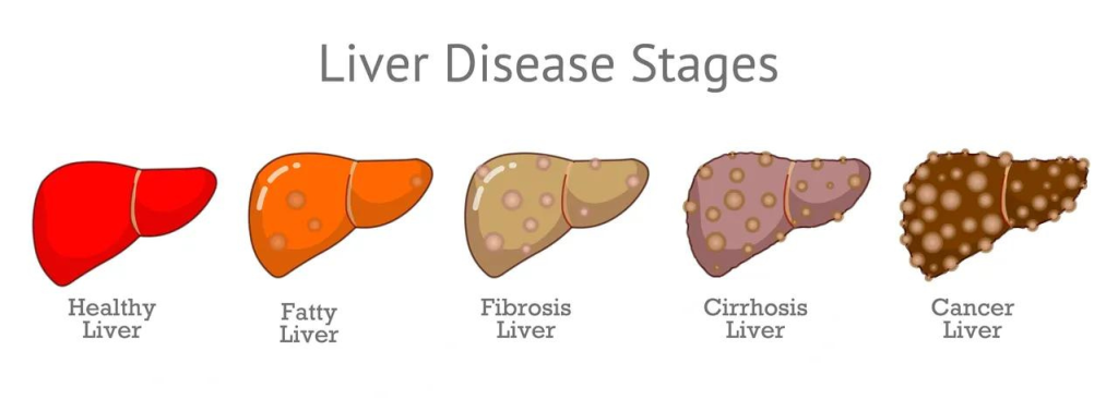 It’s important to note that fatty liver disease often progresses silently, without symptoms, but can lead to more serious complications such as liver inflammation (steatohepatitis), fibrosis, cirrhosis, and even liver cancer if left untreated. Management typically involves addressing underlying causes such as weight loss, dietary changes, managing diabetes and other metabolic conditions, and avoiding alcohol consumption. Seeking medical advice and regular monitoring are crucial for individuals at risk or diagnosed with fatty liver disease.